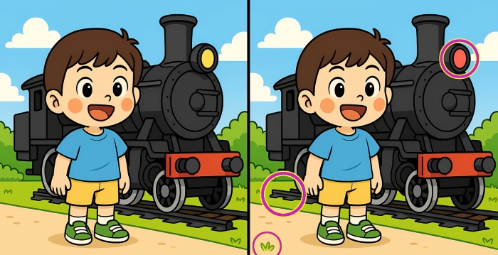 Allora, siete pronti per la prossima sfida? Osservate attentamente le due immagini del ragazzo in piedi accanto al treno a vapore. A prima vista possono sembrare identiche, ma ci sono 3 piccole differenze. Pensate di riuscire a trovarle tutte in 29 secondi? Provate e mettete alla prova la vostra acutezza visiva!