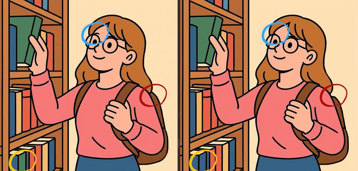Allora, siete pronti per la prossima sfida? Osservate attentamente due immagini di una ragazza che sceglie i libri in una biblioteca. A prima vista possono sembrare ugi, ma ci sono 3 piccole differenze. Pensate di riuscire a trovarle tutte in 19 secondi? Provate e mettete alla prova la vostra acutezza visiva!