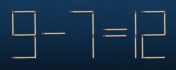 Qui di seguito viene mostrata un’immagine in cui sono stati utilizzati dei fiammiferi per ottenere l’uglianza 9-7=12. In totale sono stati utilizzati 19 fiammiferi.