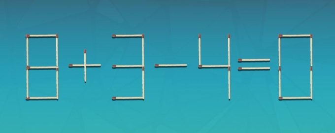 Qui sotto vedrete un’immagine in cui l’uglianza 8+3-4=0 è disposta con dei fiammiferi. È evidente che c’è un errore, perché la risposta dovrebbe essere 7.