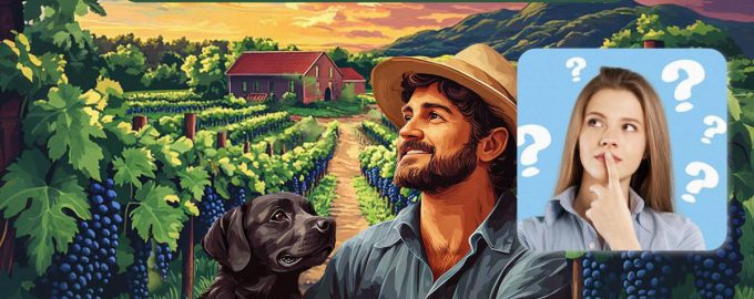 Qui sotto vedrete l’immagine di un vigneto dove un uomo sta raccogliendo l’uva. Nelle vicinanze c’è il suo fedele cane, che non lascia mai solo il padrone. Sembra che cosa ci sia di insolito qui?